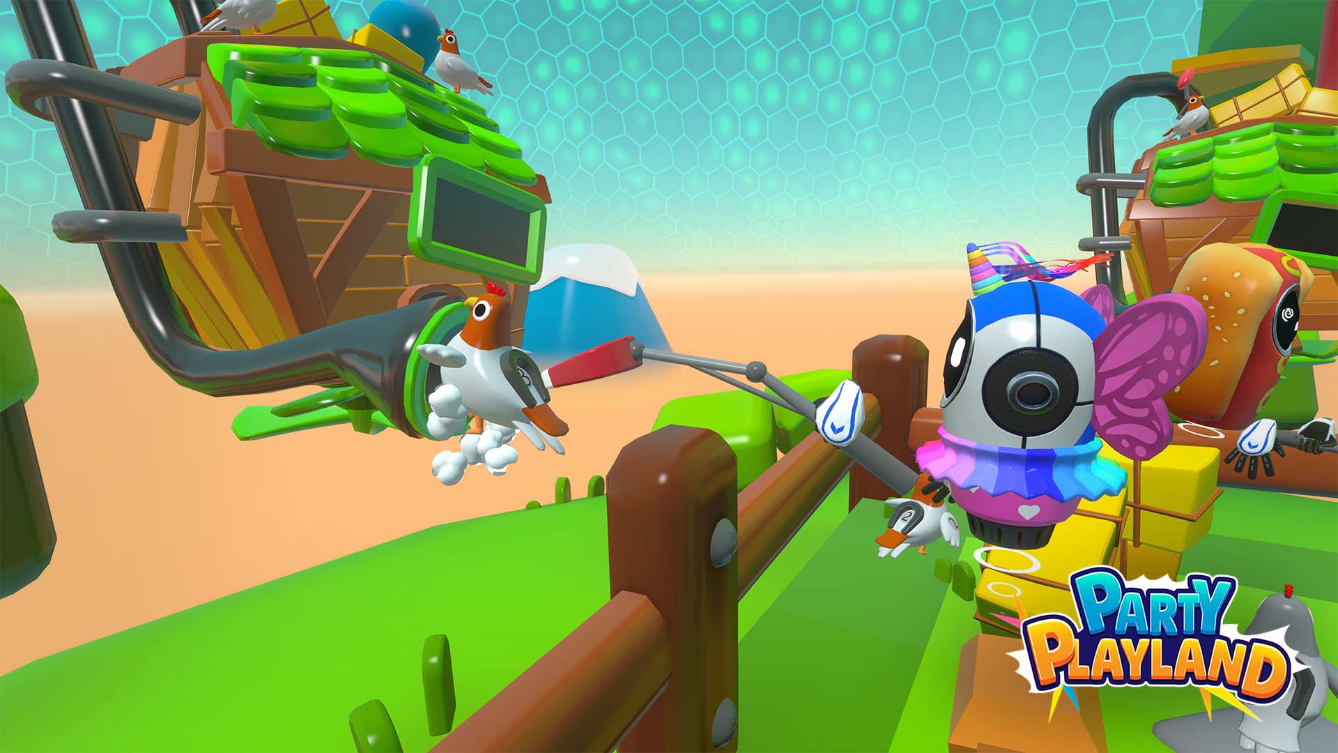 In this family-friendly party game experience, you are transported to a colorful world where you and your friends will compete to become the latest and greatest Party Champion. Discover a freeroam VR playground like never before ! Each mini-game offers a unique challenge and adventure. Whether you’re casting your fishing rod to snag chickens, squashing invading crabs, avoiding traps, and more. Every round promises thrills and laughter. Party Playland guarantees an unforgettable party experience filled with endless fun and excitement!